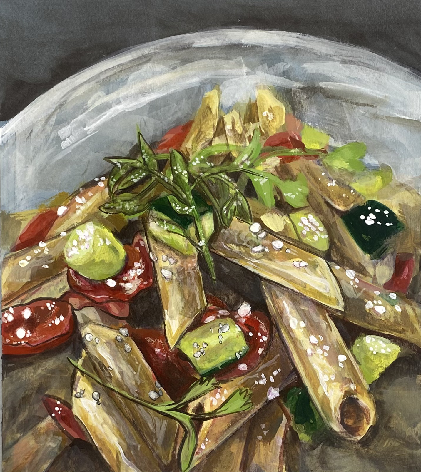 9×11in - 12×14in painting of any food, limit 3 dishes/plates, $50 booking fee covers or goes towards 50% upfront cost